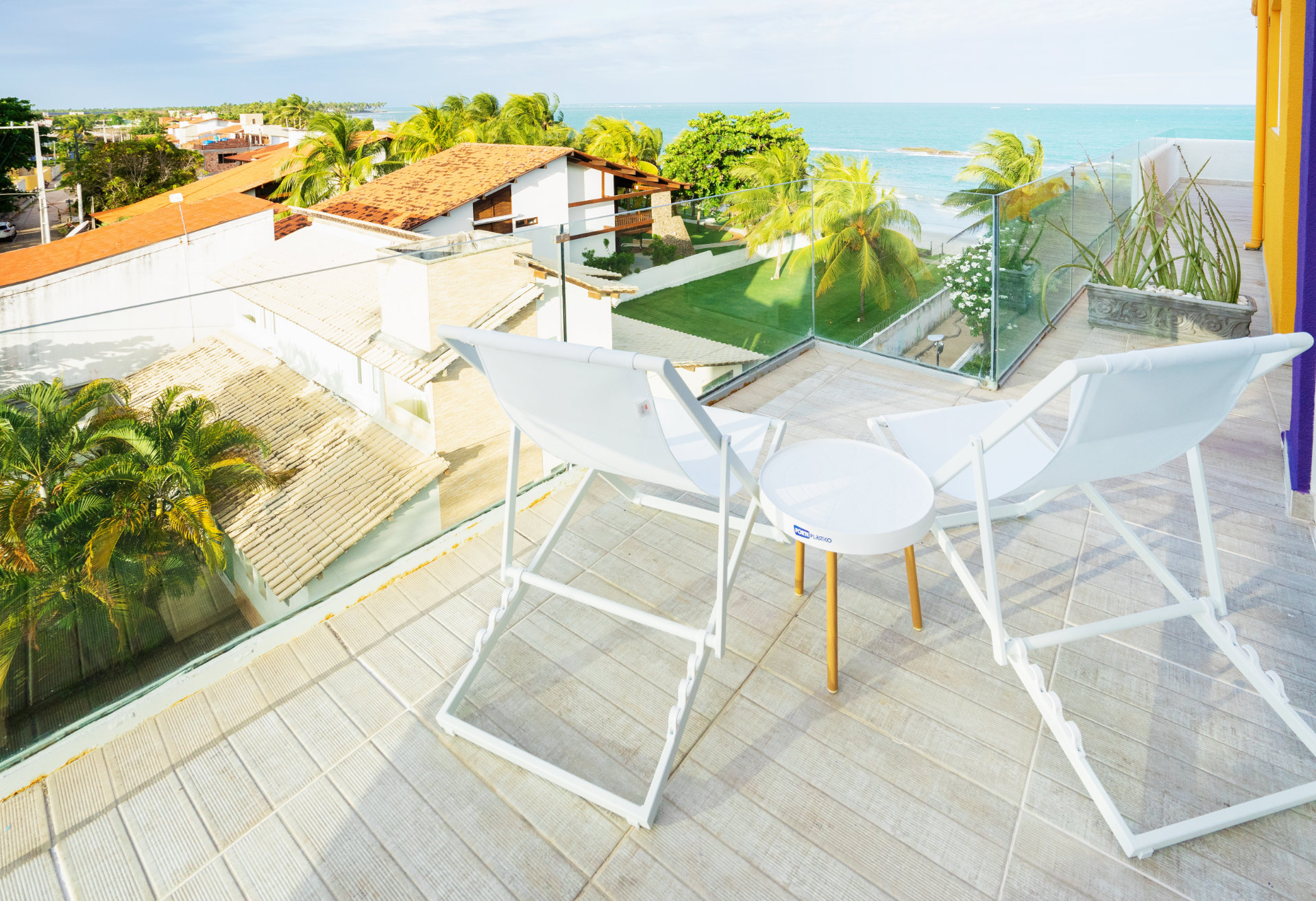 Despite it being located laterally respect to the beach, Casa Violeta, thanks to the large windows in the living room and bedroom and the private terrace, offers unique glimpses of beauty because it ranges from the view of the ocean and in particular of the Pontal of Praia dos Carneiros, but at the same time also on the luxuriant hills where the sun goes to rest at the end of the day, giving sunsets of extraordinary beauty and coloring the sky with pink and red.