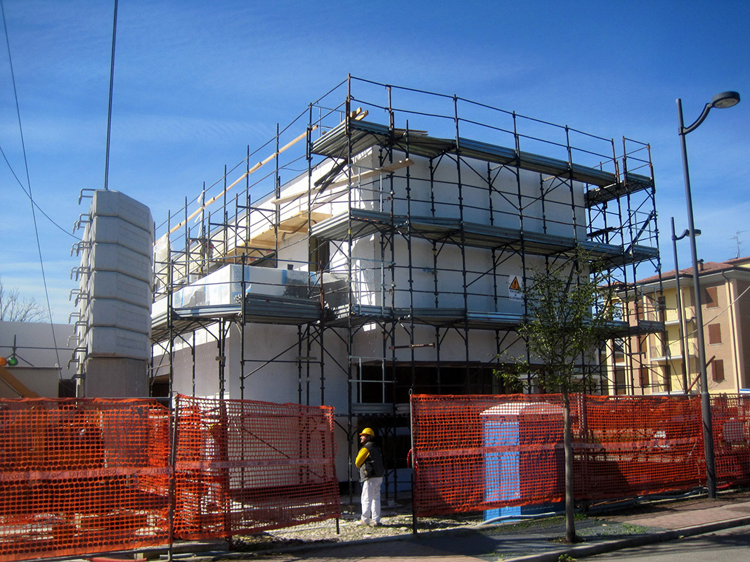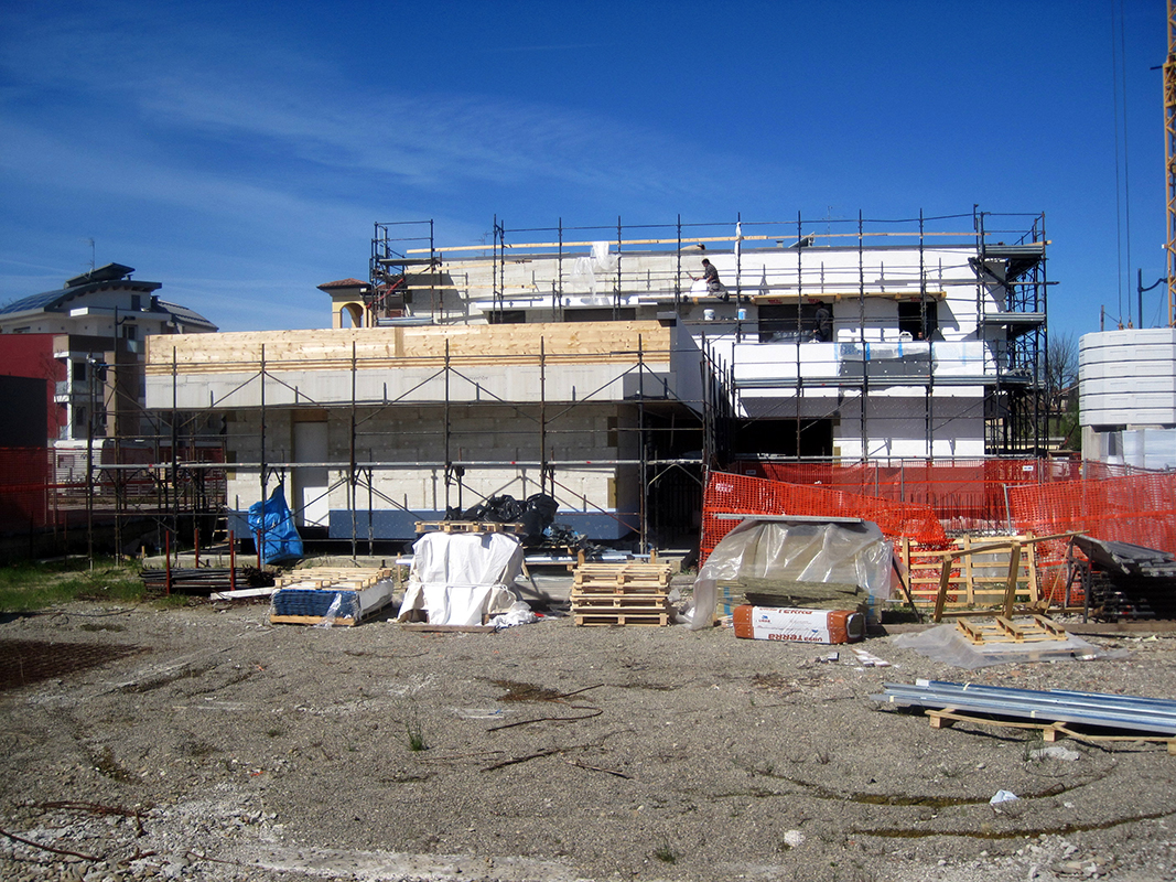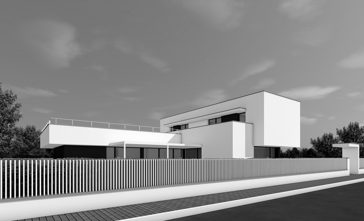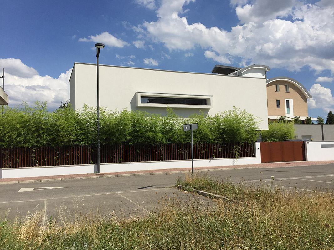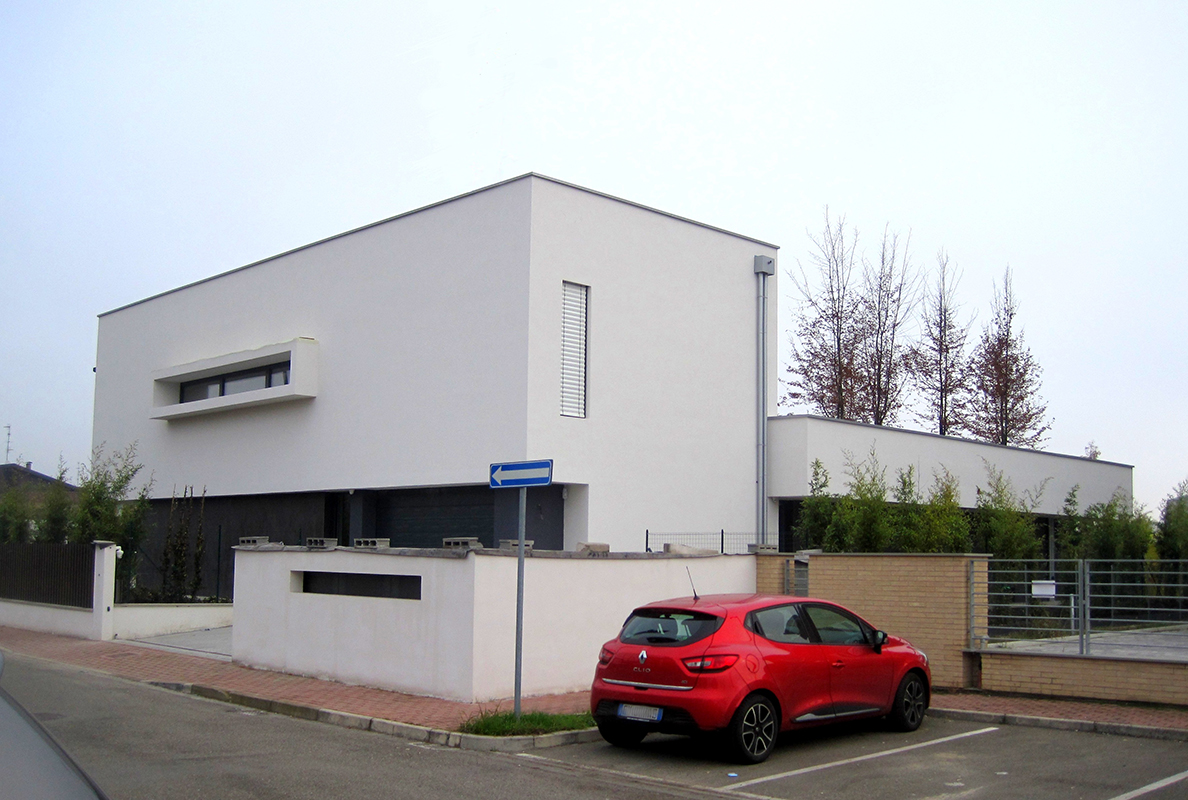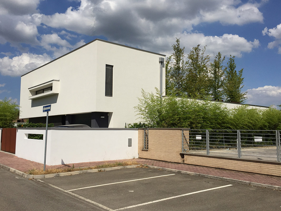 Realizzazione di immobile dallo stile moderno, sviluppato principalmente su unico livello al piano terra con una porzione su due livelli. Dotata di grandi vetrate sul cortile, presenta tetti piani e giardino pensile.