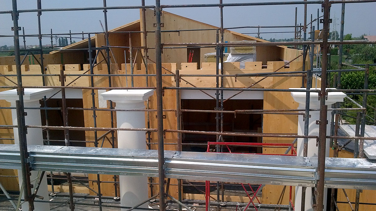 Esecuzione di una nuova abitazione in XLAM  ad alta efficienza energetica in stile Neoclassico (palladiano), situata in periferia del Comune di Vicenza loc. Bertesina.