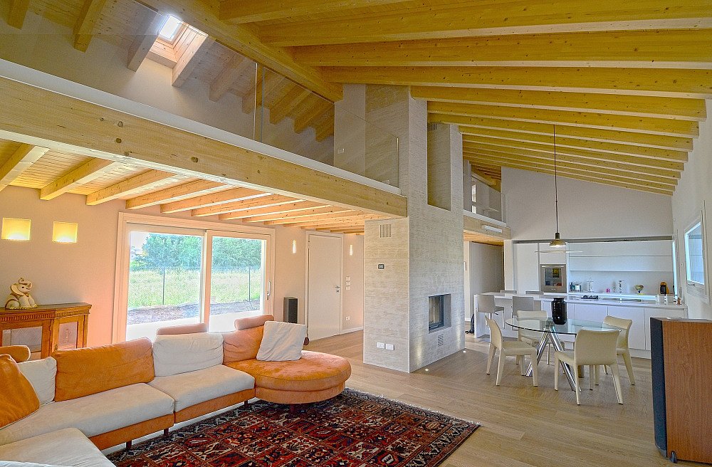Realizzata in contesto di nuova urbanizzazione, l’abitazione monofamiliare si sviluppa essenzialmente su unico livello al piano terreno con la sola suite padronale al piano primo. Realizzato su progetto dell’arch. Andrea Peruffo, l’edificio stilisticamente combina elementi tradizionali ad altri moderni.