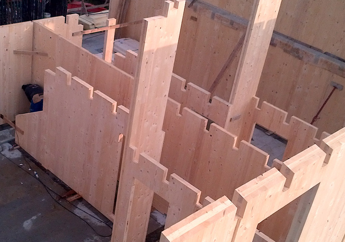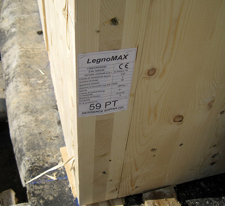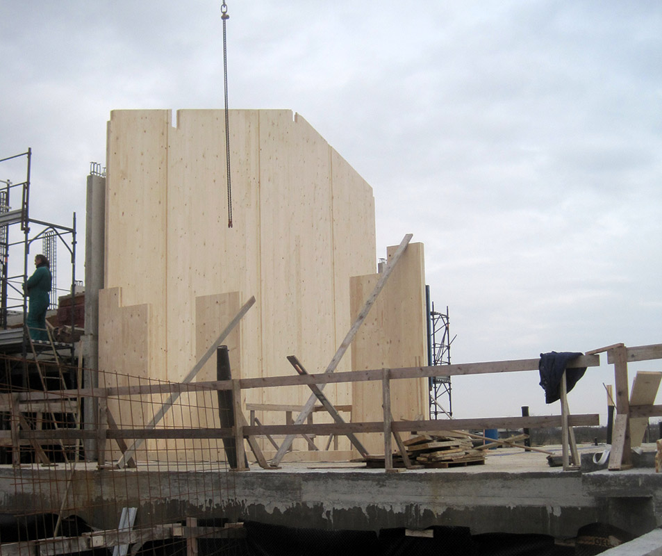 L’incollaggio avviene mediante colla PUR. Priva di solventi e formaldeide, è testata secondo la norma DIN 68141 e i severi criteri stabiliti dall’istituto MPA di Stoccarda, nonchè certificata per la fabbricazione di componenti portanti in legno e strutture speciali in base alle norme DIN 1052 ed EN 301. L’incollaggio incrociato sotto forte pressione permette di ridurre al minimo i fenomeni di rigonfiamento e ritiro del legno. I pannelli in legno massiccio XLAM trovano impiego come elementi per pareti, solai e tetti di grande formato. Offrono possibilità di distribuzione del carico del tutto nuove. Il carico, infatti, non viene sostenuto lungo un unico asse, come nel caso di travi e montanti, bensì può essere distribuito in tutte le direzioni.