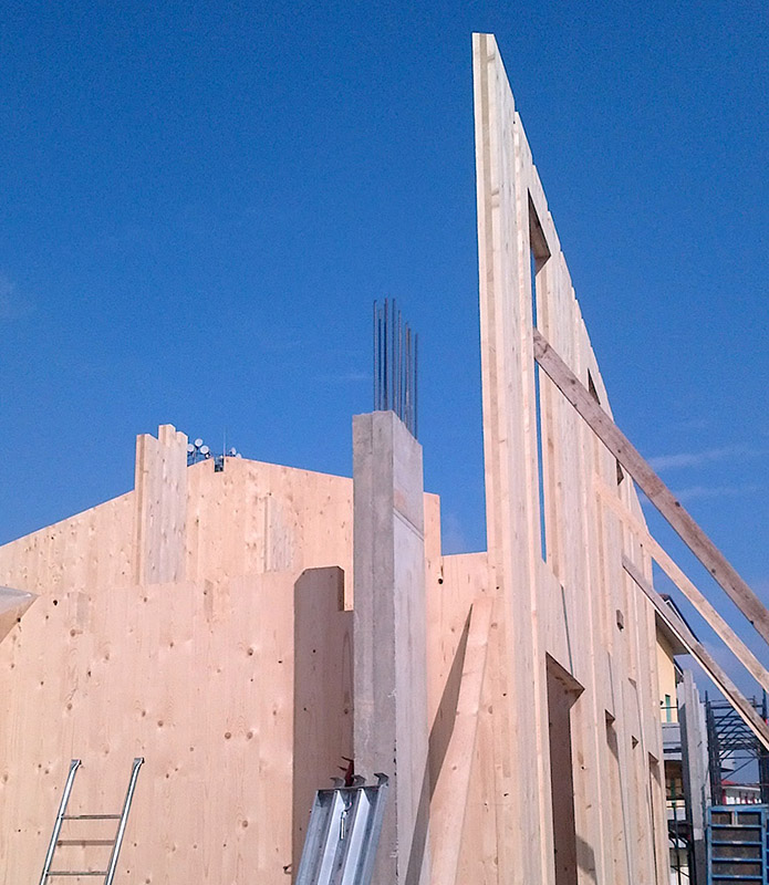 Non solo case complete ma anche sopraelevazioni ed ampliamenti in pannelli di legno massiccio Xlam con tempi di realizzazione pari alla metà di quelli di edilizia tradizionale.