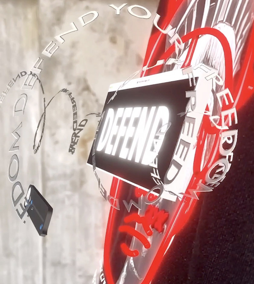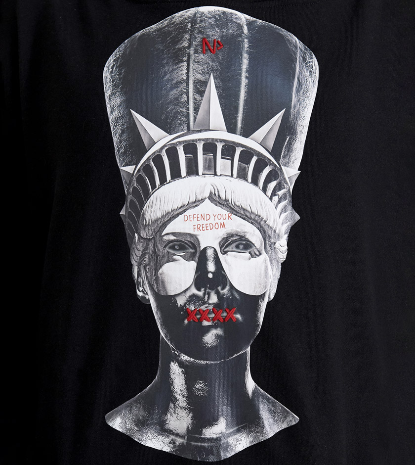 > Stampa "Defend Your Freedom” con elementi ricamati