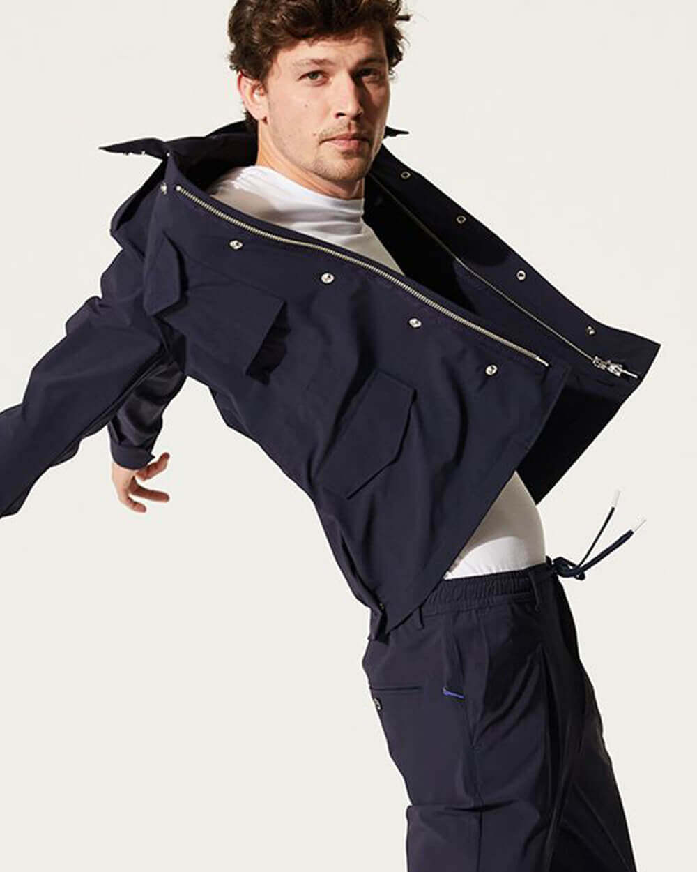 The look is completed by the tailored Chelsea jacket and the sportier saharan Saigon jacket, both men's stretch jackets give great freedom of movement and complete comfort, also adapting to sportier looks.