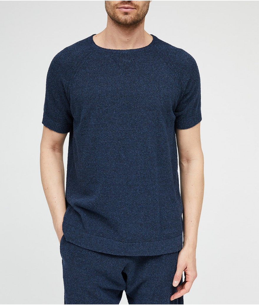 Short-sleeved crew neck t-shirt in fresh bouclè fabric.