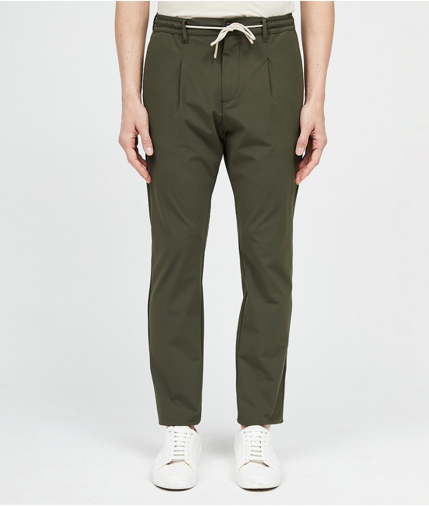 Slim fit trousers, with relaxed hips and drawstring on the waist.