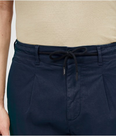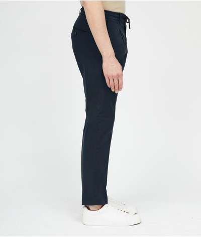 Slim fit trousers, with relaxed hips and drawstring on the waist.