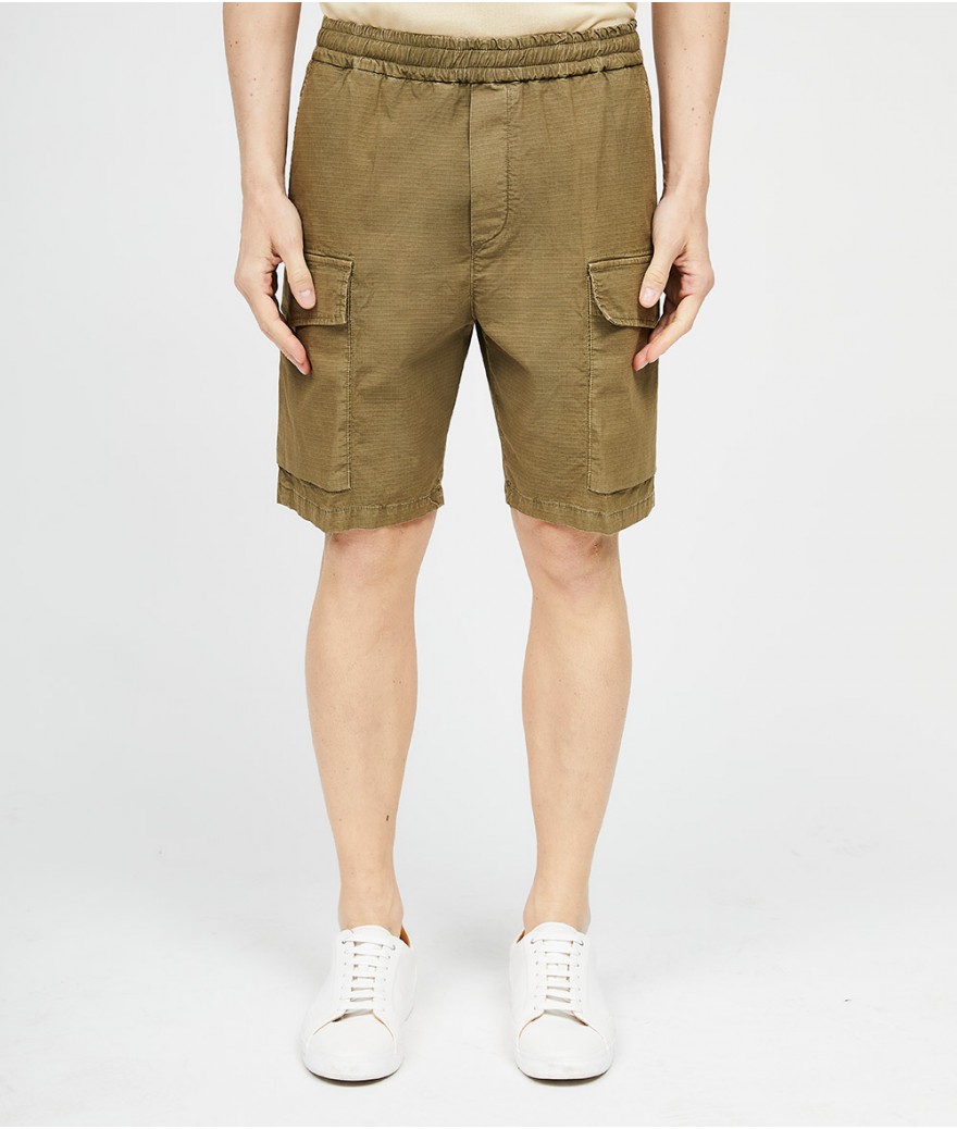 Key West Bermuda shorts, realized in cotton rip-stop fabric, with elastic belt and patch pockets.