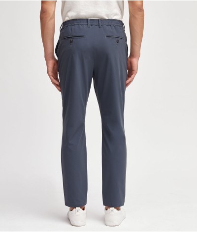 Slim fit trousers realized in Technical Jersey with relaxed hips, elastic belt, and tapered bottom.