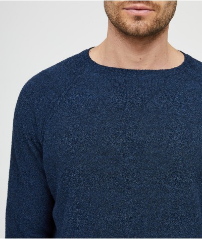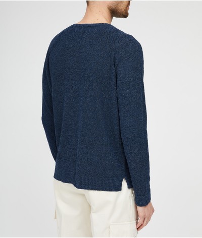 Maglia girocollo a manica lunga raglan, realizzata in fresco tessuto bouclè.