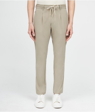 Pantalone slim fit in jersey tecnico con coulisse ed elastico in cintura.