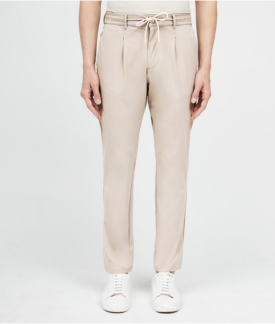 Pantalone slim fit in jersey tecnico con coulisse ed elastico in cintura.