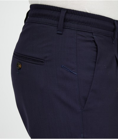 Pantalone slim fit, con bacino morbido e cintura con coulisse in fresco lana stretch.