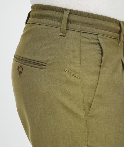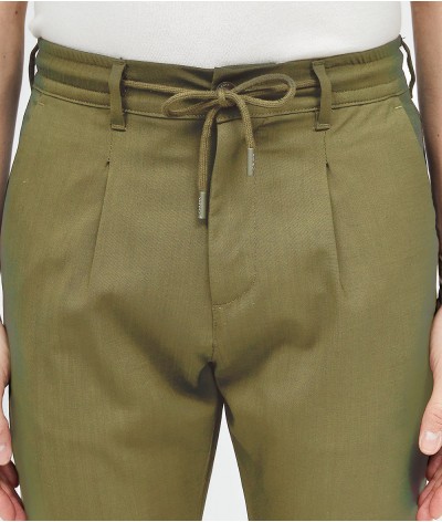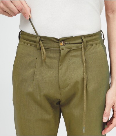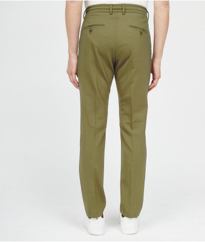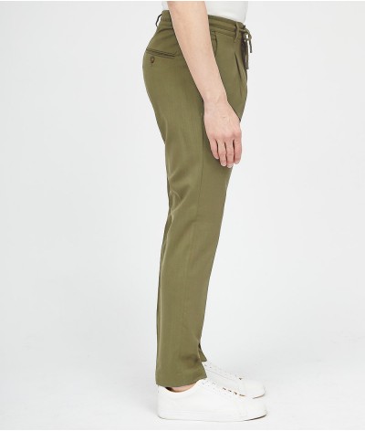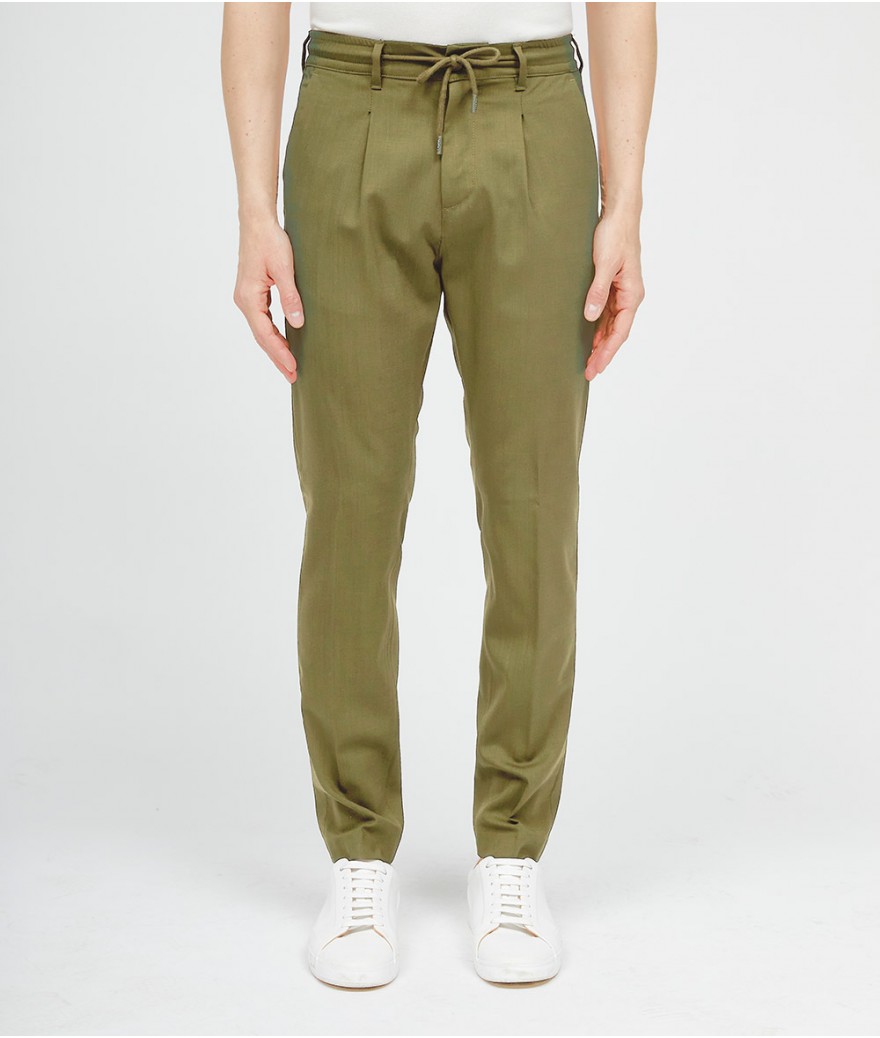 Pantalone slim fit, con bacino morbido e cintura con coulisse in fresco lana stretch.