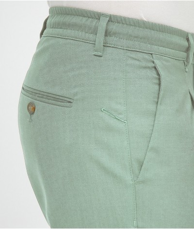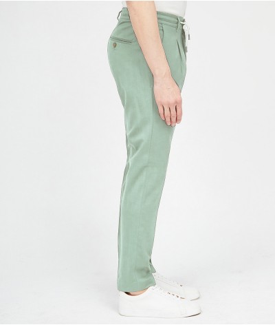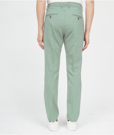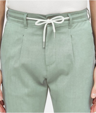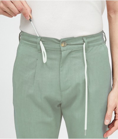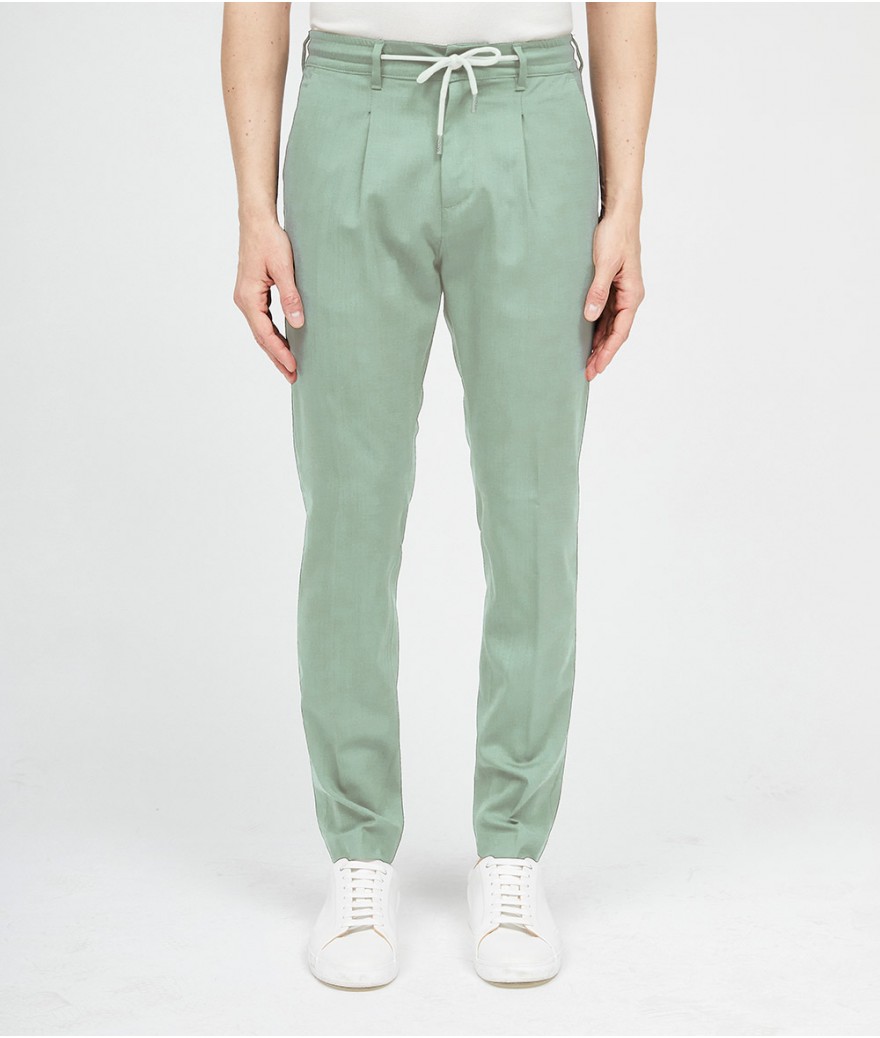 Pantalone slim fit, con bacino morbido e cintura con coulisse in fresco lana stretch.