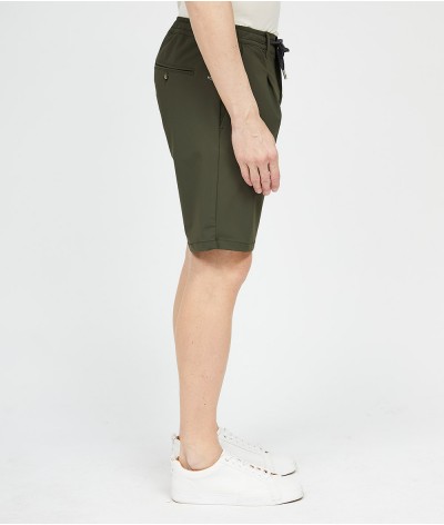 Pantalone bermuda con bacino morbido e cintura con coulisse in jersey tecnico.
