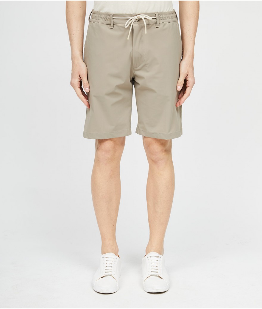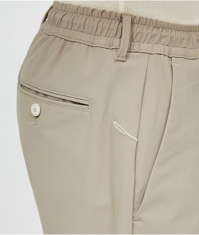 Pantalone bermuda con bacino morbido e cintura con coulisse in jersey tecnico.