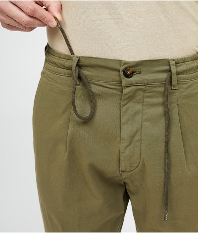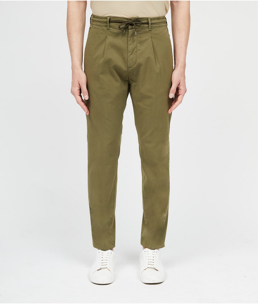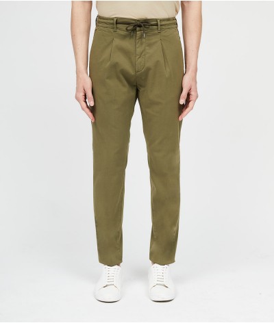 Pantalone slim fit, con bacino morbido e cintura con coulisse.