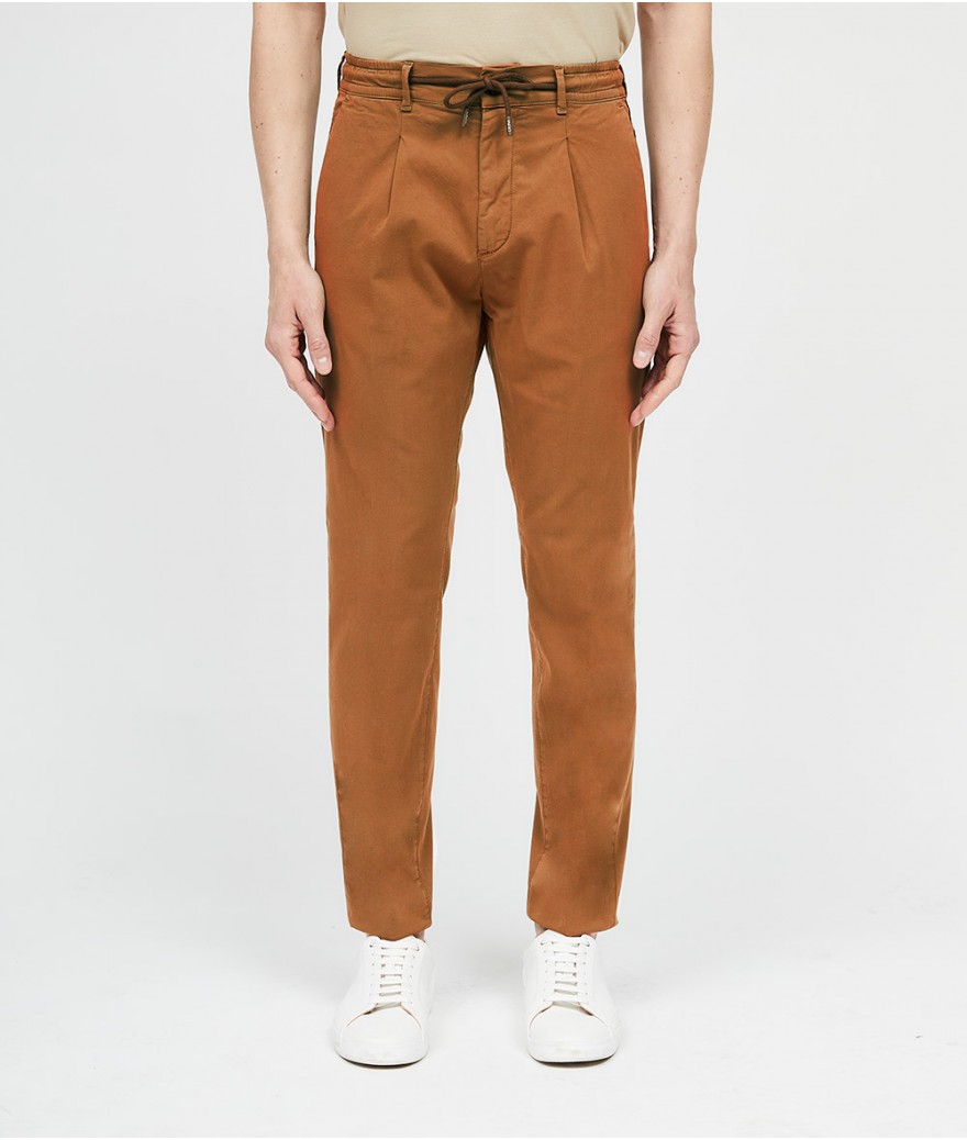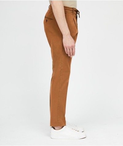Pantalone slim fit, con bacino morbido e cintura con coulisse.