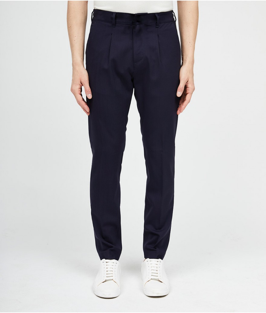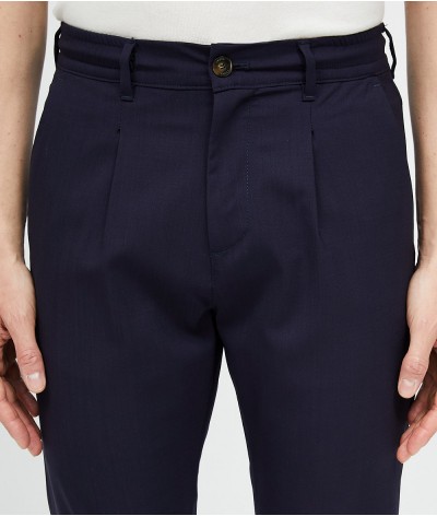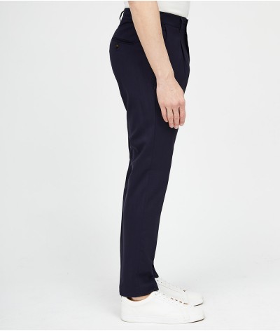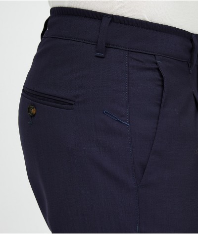 Pantalone slim fit, con bacino morbido ed elastico in cintura in fresco lana stretch.