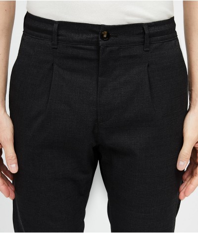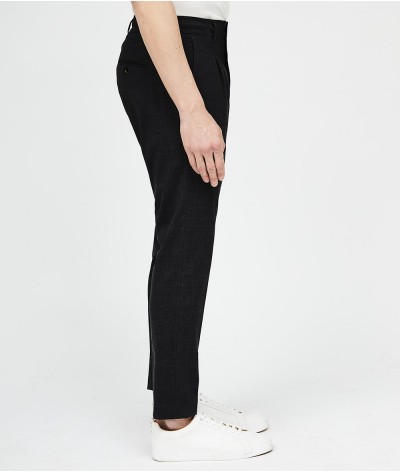 Pantalone slim fit, con bacino morbido ed elastico in cintura in fresco lana stretch.