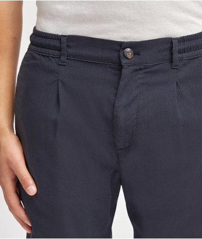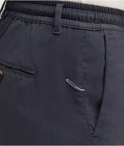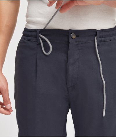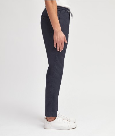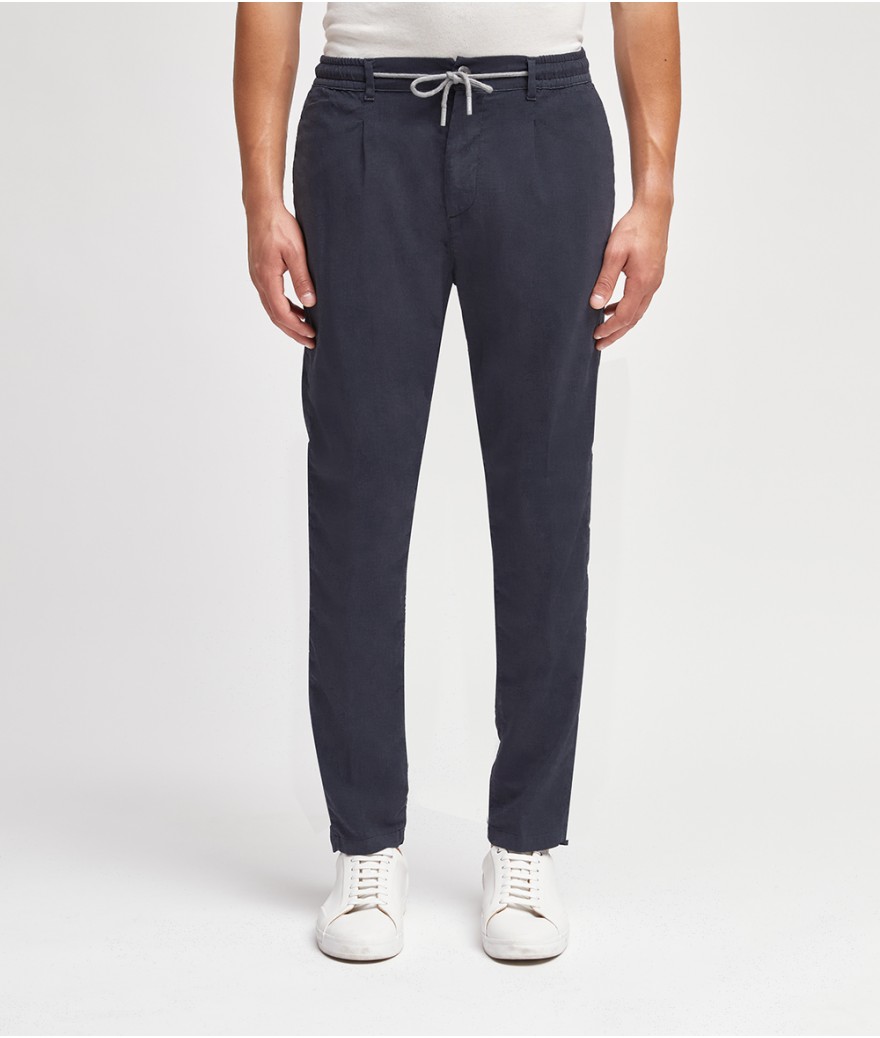Pantalone slim fit, con bacino morbido e cintura con coulisse in fresco lana stretch.